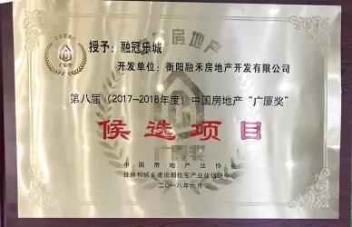 融冠樂城是融冠集團(tuán)在衡陽開發(fā)的第六個(gè)項(xiàng)目,總建筑面積約100萬平米,是第八屆(2017-2018年度)“廣廈獎(jiǎng)”候選項(xiàng)目,2018-2019連續(xù)兩年蟬聯(lián)衡陽樓市冠軍, 2018-2020年連續(xù)三年被省房協(xié)授予“優(yōu)秀品質(zhì)樓盤”榮譽(yù)。