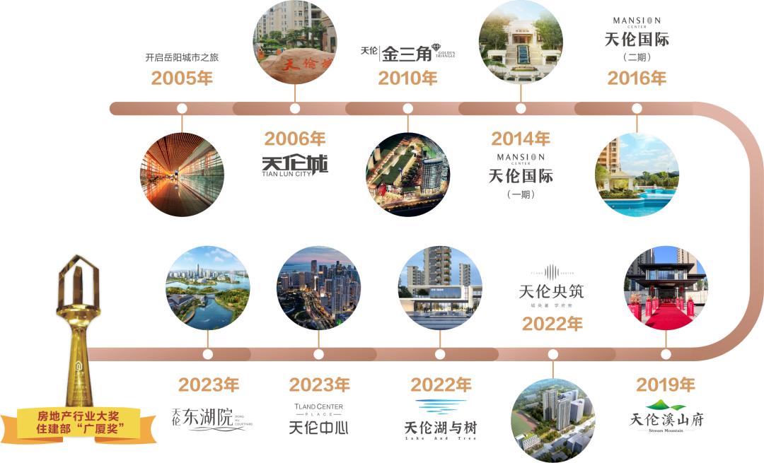 天倫地產深耕岳陽19載,作為長期主義的踐行者,以過硬的產品力、良好的口碑及健康的財務狀況為支撐,在跌宕起伏的樓市中穩步前進。天倫地產堅持區域深耕,以品質樹品牌,以責任承載信任,榮獲“岳陽市十強民營企業”、“十佳誠實守信企業”、“湖南省標桿企業”等榮譽,其中天倫城、天倫國際雙雙榮獲房地產行業大獎“廣廈獎”。天倫地產匠心精筑,在岳陽的每一步都踏實而堅定,樹立了安心置業、品質置業的人居范本。