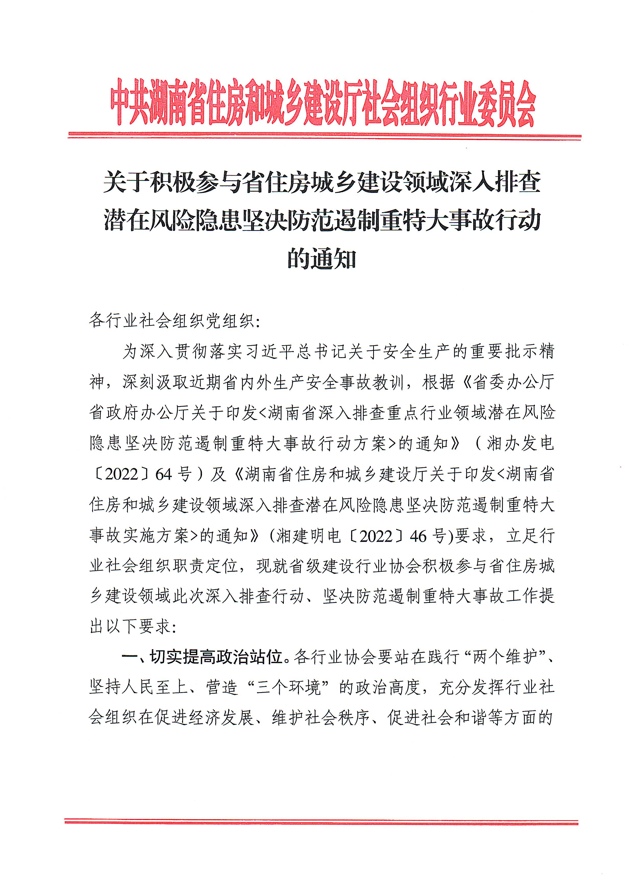 關(guān)于積極參與省住房城鄉(xiāng)建設(shè)領(lǐng)域深入排查潛在風(fēng)險隱患堅(jiān)決防范遏制重特大事故行動的通知