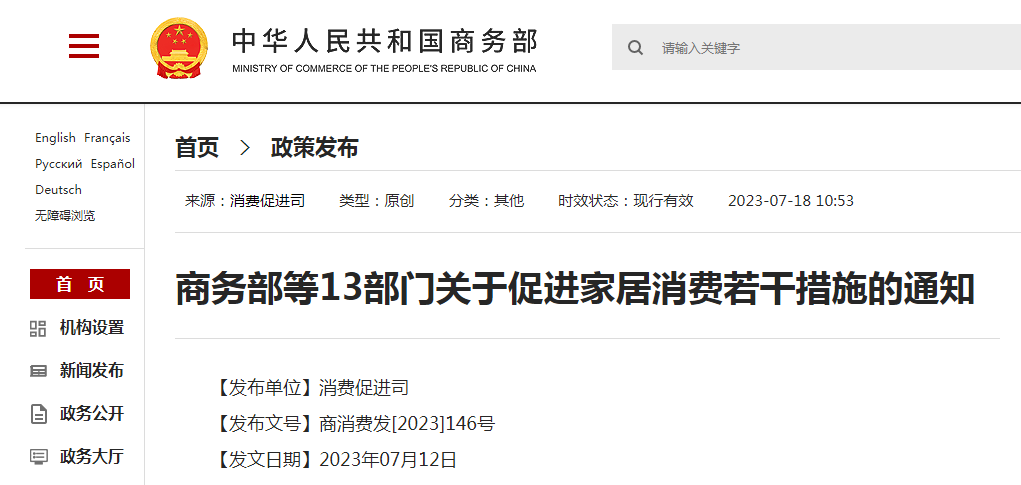 近日,商務部等13部門印發《關于促進家居消費的若干措施》(以下簡稱《若干措施》),以綠色化、智能化、適老化為發力點,圍繞提升供給質量、創新消費場景、改善消費條件、優化消費環境等,提出4方面11條政策舉措,促進家居消費恢復和升級。